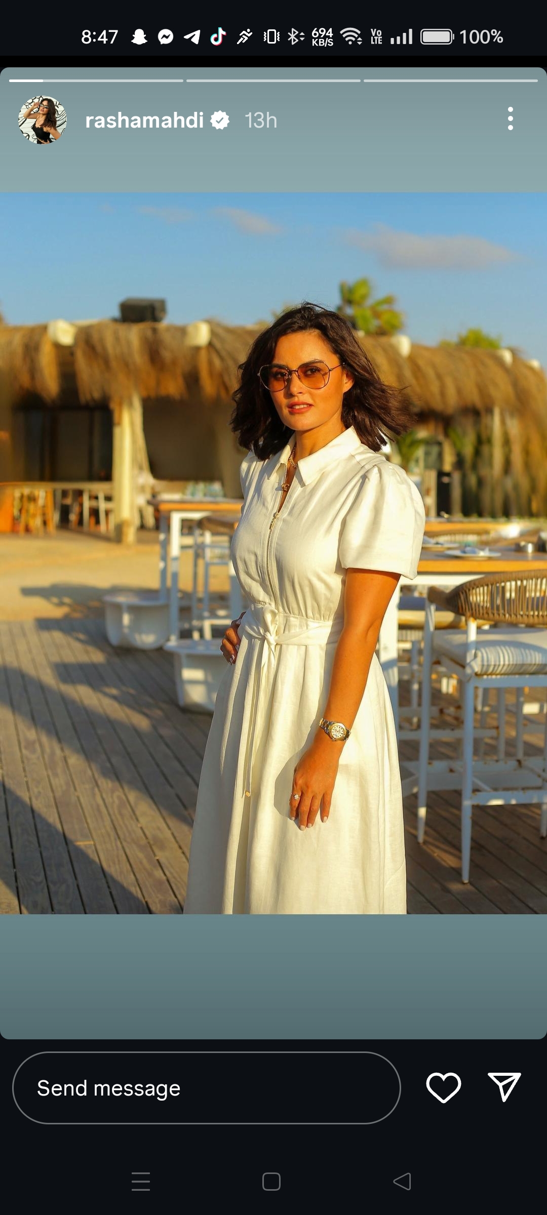 شاركت الفنانة رشا مهدي، متابعيها، صورة جديدة لها، عبر حسابها لتبادل الصور والفيديوهات القصيرة “إنستجرام”، من خلال خاصية “ستوري”.