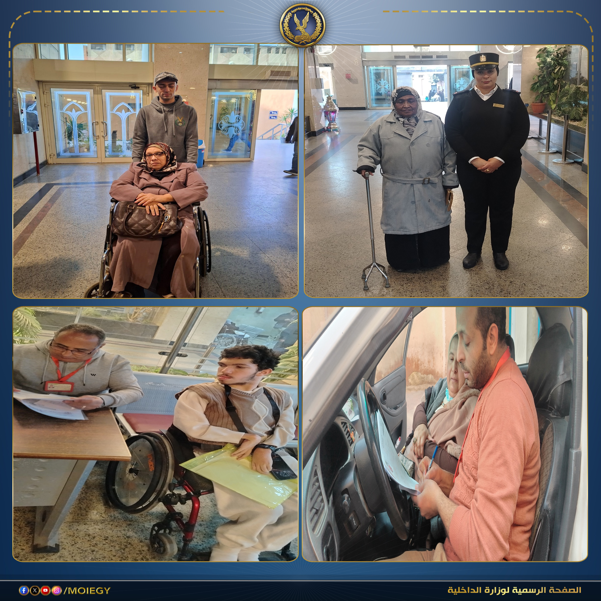 فى إطار سياسة وزارة الداخلية الهادفة إلى مراعاة حقوق الإنسان والتيسير على المواطنين راغبى الحصول على الخدمات والمستندات الشرطية وخاصةً كبار السن وذوى الإحتياجات الخاصة.