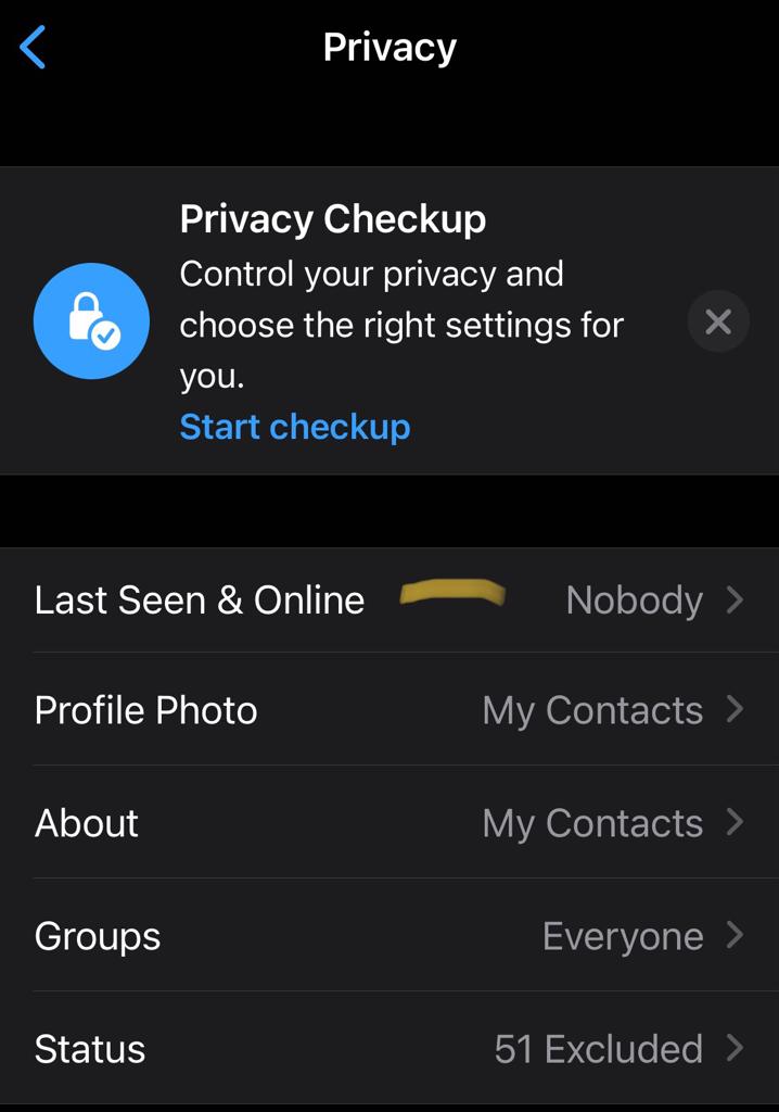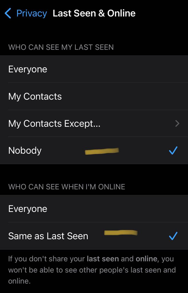 4- اجعل خيار أخر ظهور Last Seen “لا أحد”.